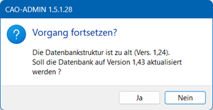 Sobald das Datenbankupdate durchgelaufen ist werden Sie darauf hingewiesen. CAO-Faktura kann dann wieder gestartet werden.