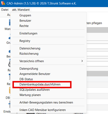 Wählen Sie das Menü "akt.Mandant -> Datenbankupdate durchführen"