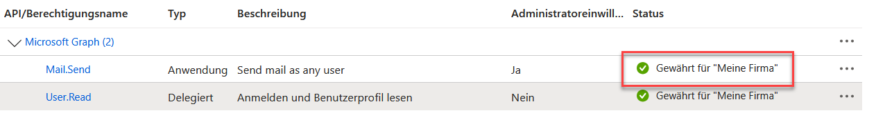 Um Emails versenden zu können wird nun noch eine API Berechtigung benötigt.