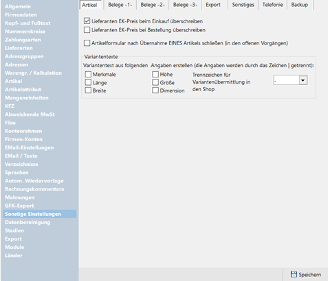In den Sonstigen Einstellungen werden zusätzliche und erweiterte Einstellungen erfasst.